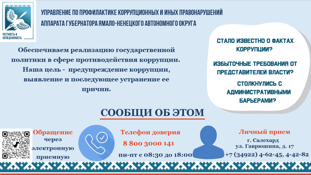 Управление по профилактике коррупционных и иных правонарушений аппарата губернатора ЯНАО информирует