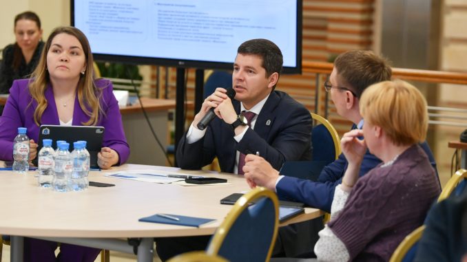 Губернатору округа Дмитрию Артюхову на стратегической сессии «Цифровая прокачка» представили проекты по развитию сервисов единой карты жителя Ямала «Морошка».