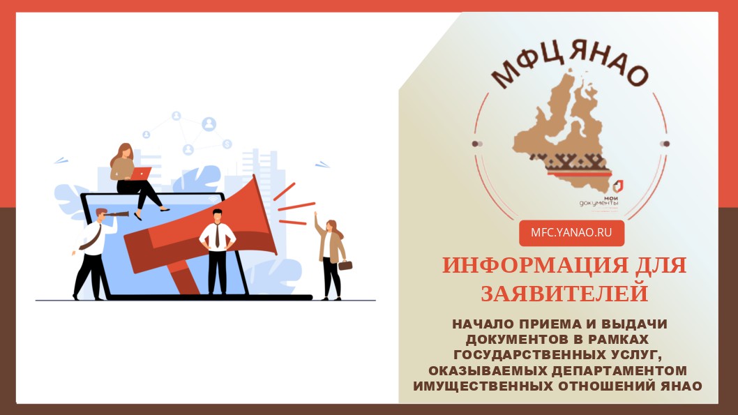 Информируем вас о начале приема и выдачи документов в рамках отдельных государственных услуг, оказываемых Департаментом имущественных отношений ЯНАО: