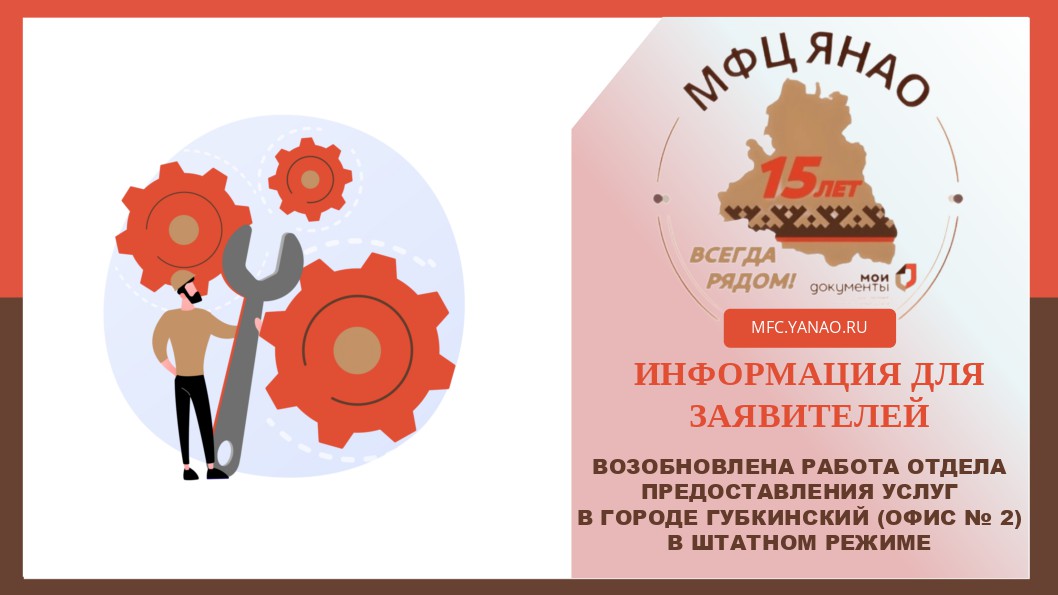 Информируем о возобновлении работы отдела предоставления услуг в городе Губкинский (офис № 2) в штатном режиме.