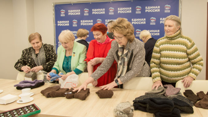 Не остались в стороне и так называемые «серебряные» волонтеры из общественной организации ветеранов войны, труда, Вооруженных сил и правоохранительных органов «Ветеран». Пряжу им выдали в Совете ветеранов. Кто-то из горожанок стал вязать манишки, кто-то носки. Все вещи изготовлены исключительно из натуральной шерсти. 9 февраля активистки организации во главе с председателем Валерием Дулеповым приехали в приемную местного отделения партии «Единая Россия», чтобы передать партию готовых изделий.