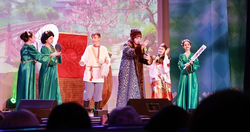 Танцевально-спортивный клуб «Индиго» перенес зрителей и главных героев в удивительное путешествие по странам. Корейский танец с веерами, которые раскрывались в прекрасный цветок, создал особую атмосферу. Танцоры клуба также создали колорит ближнего востока при помощи персидского танца, а вальс юных танцоров перенес всех в сказочный лес заколдованного Чудовища.