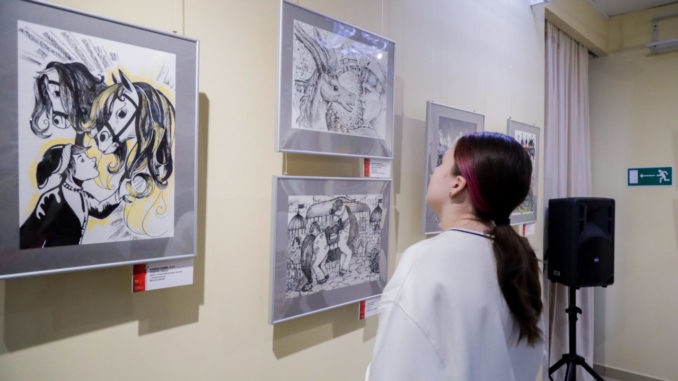 Вернисаж состоит из 72 графических работ юных художников Ямала и Тюмени – все они победители регионального детского конкурса творчества «Путешествие в сказку. Чудо-книжка «Конек-горбунок».