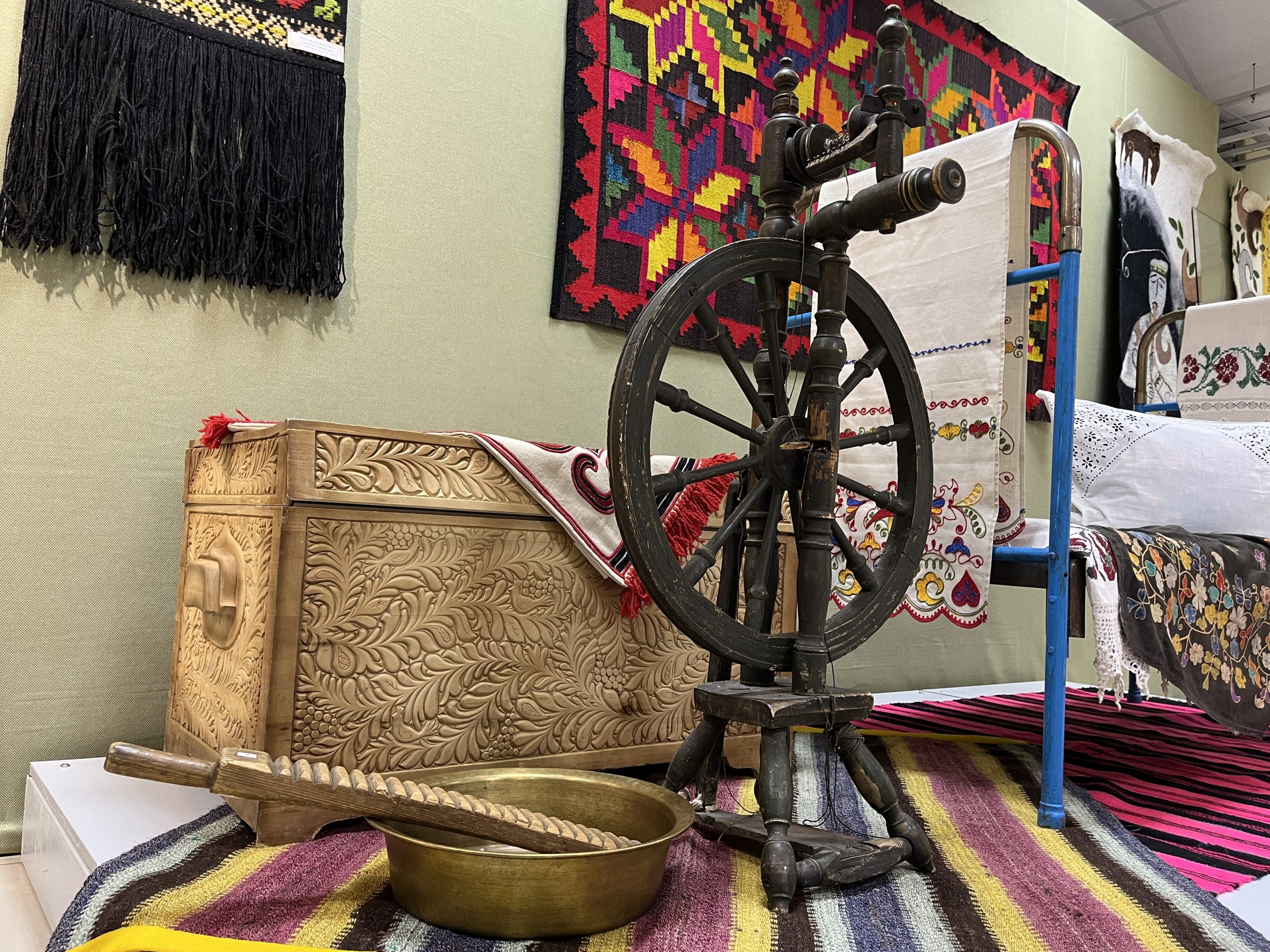 Вы увидите древний ткацкий станок кочевников с основой из конского волоса, старинные инструменты женского рукоделия и мужских ремесел, посуду, музыкальные инструменты, национальные костюмы, изделия ковроткачества, женские украшения. Погружение в культуру прошлого разнообразят изделия мастеров-современников — шкатулки и сувениры из яшмы, работы из войлока — ковры с национальным орнаментом, куклы, полотенца с тамбурной вышивкой, скульптуры по мотивам башкирского эпоса и многое другое.