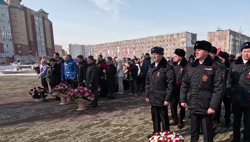 С раннего утра Площадь Памяти - место притяжения новоуренгойцев. Один за другим меняются почетные караулы, строгий шаг чеканят правнуки тех, кто в годы войны пожертвовал жизнью во имя мира на земле. Нет семьи, которой бы Великая Отечественная не коснулась.