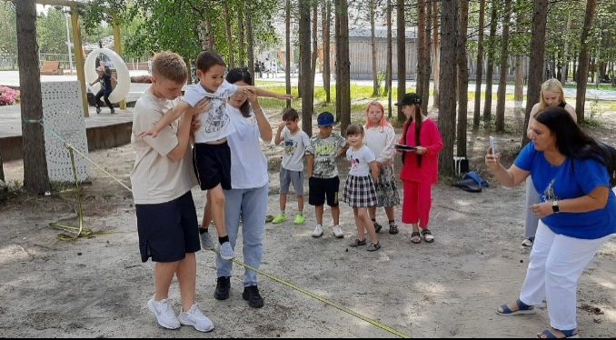 Юные участники игрового квеста прошли ряд испытаний. Они научились работать с компасом и узнали, что такое азимут. На станции «Слэклайн» приобщились к искусству балансировки, пройдя по стропе с поддержкой.