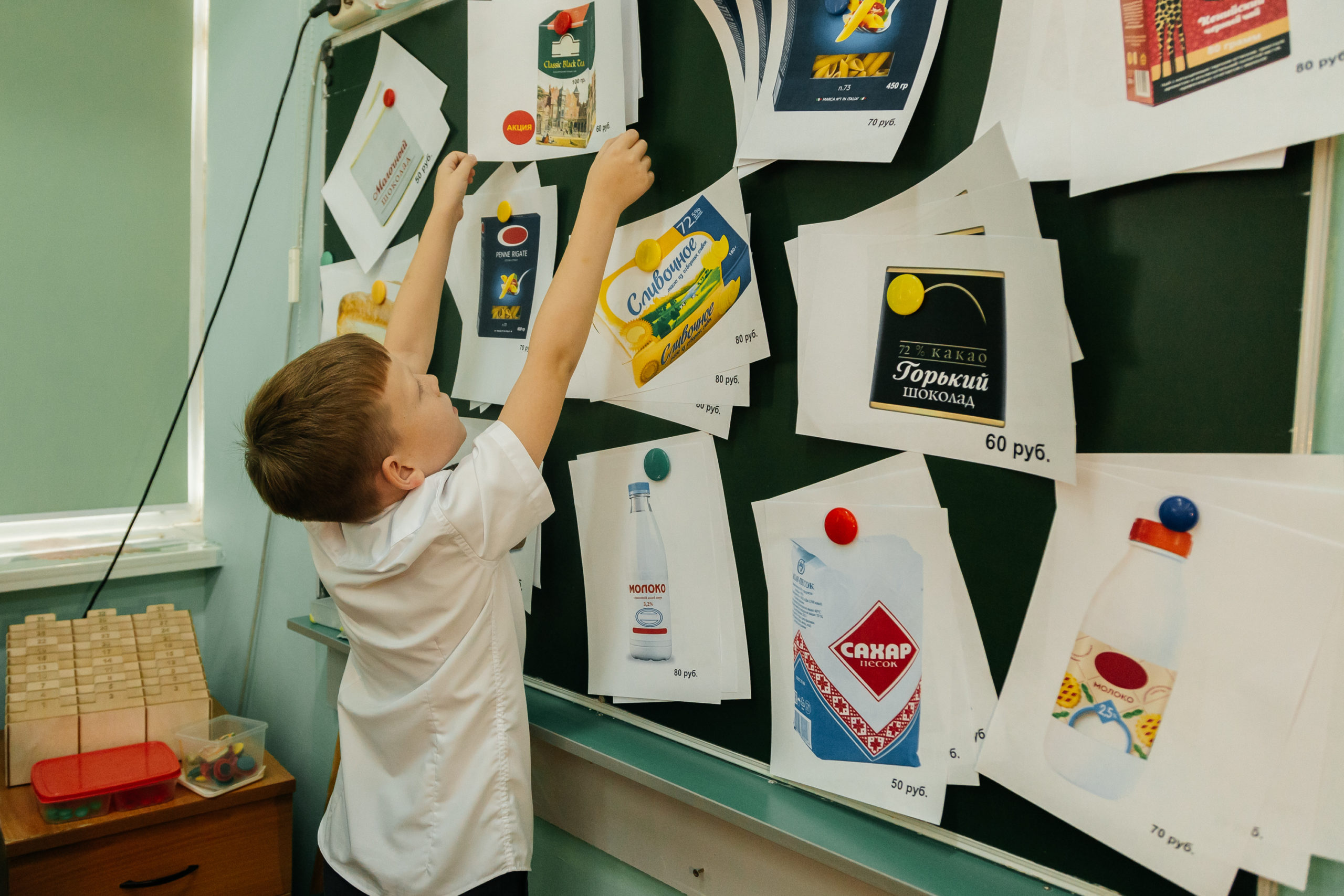 Дети выполняли различные задания, связанные с планированием расходования денег, где нужно было проявить внимание и самостоятельность. Больше всего им понравилось играть в магазин. Школьники начального звена совершали покупки согласно списку. При этом они должны были очень внимательно проверить наличие в корзине нужных товаров и сосчитать сдачу, сверив с ценниками.