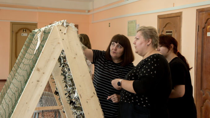 В Ноябрьске добровольцы школы № 12 организовали мастерскую по плетению маскировочных сетей