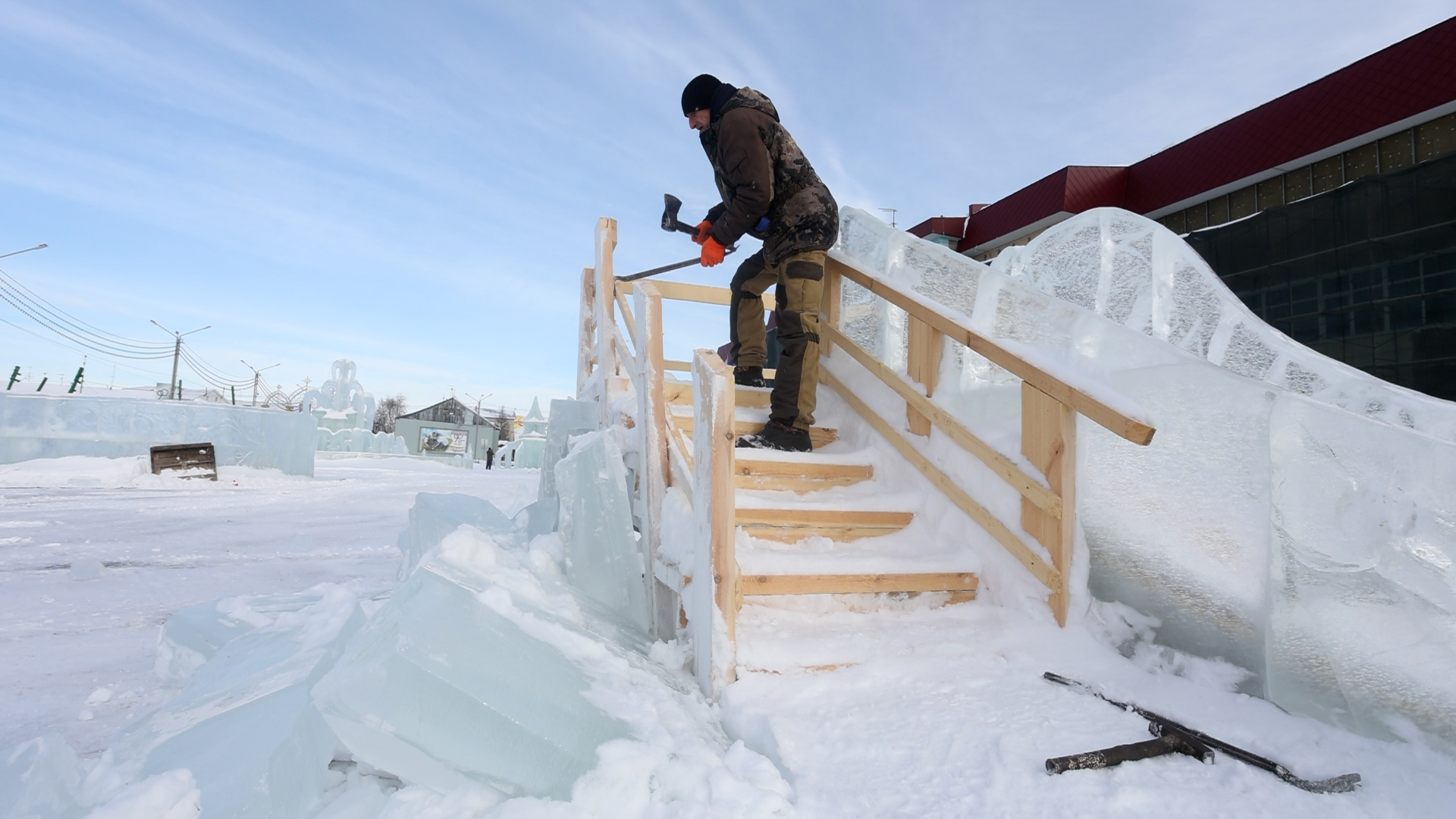 В Тарко-Сале – весна. Не только календарная. Днём столбик термометра все ближе к нолю. На площади КСК «Геолог» начался снос ледового городка. Из-за относительно тёплой погоды фигуры небезопасны. После сотрудники управления городского хозяйства перейдут к разборке фигур у ДК «Юбилейный». Как прощаются с зимней сказкой – смотрите в нашей рубрике «Без комментариев».