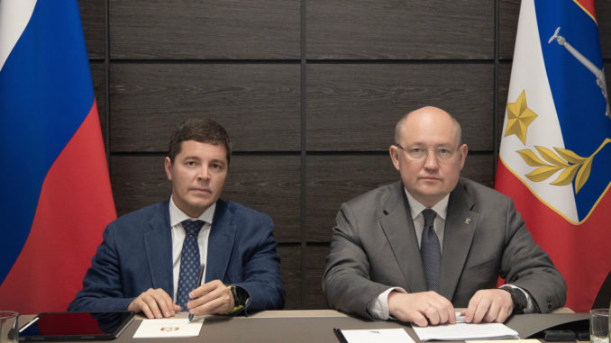Губернатор Ямала Дмитрий Артюхов сейчас работает в Крыму. Он подключился к ВКС из студии правительства Севастополя вместе с губернатором Севастополя Михаилом Развожаевым.
