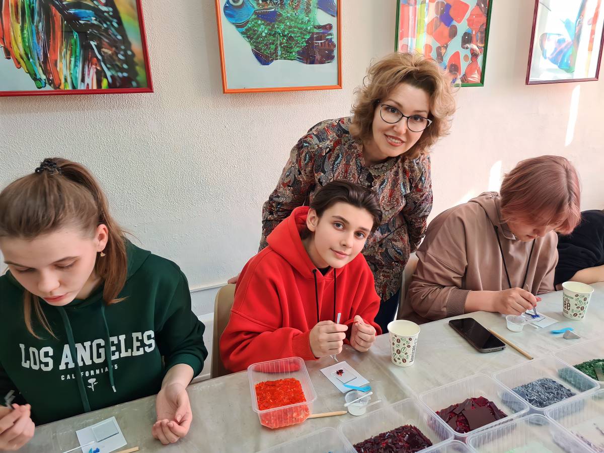 В Ноябрьске для ребят подготовили насыщенную программу с познавательными экскурсиями. Самая первая – в музей Воинской Славы. Здесь для них провели и урок истории, и мастер-класс по фьюзингу – это витражная техника по созданию изделий из разноцветных кусочков стекла.