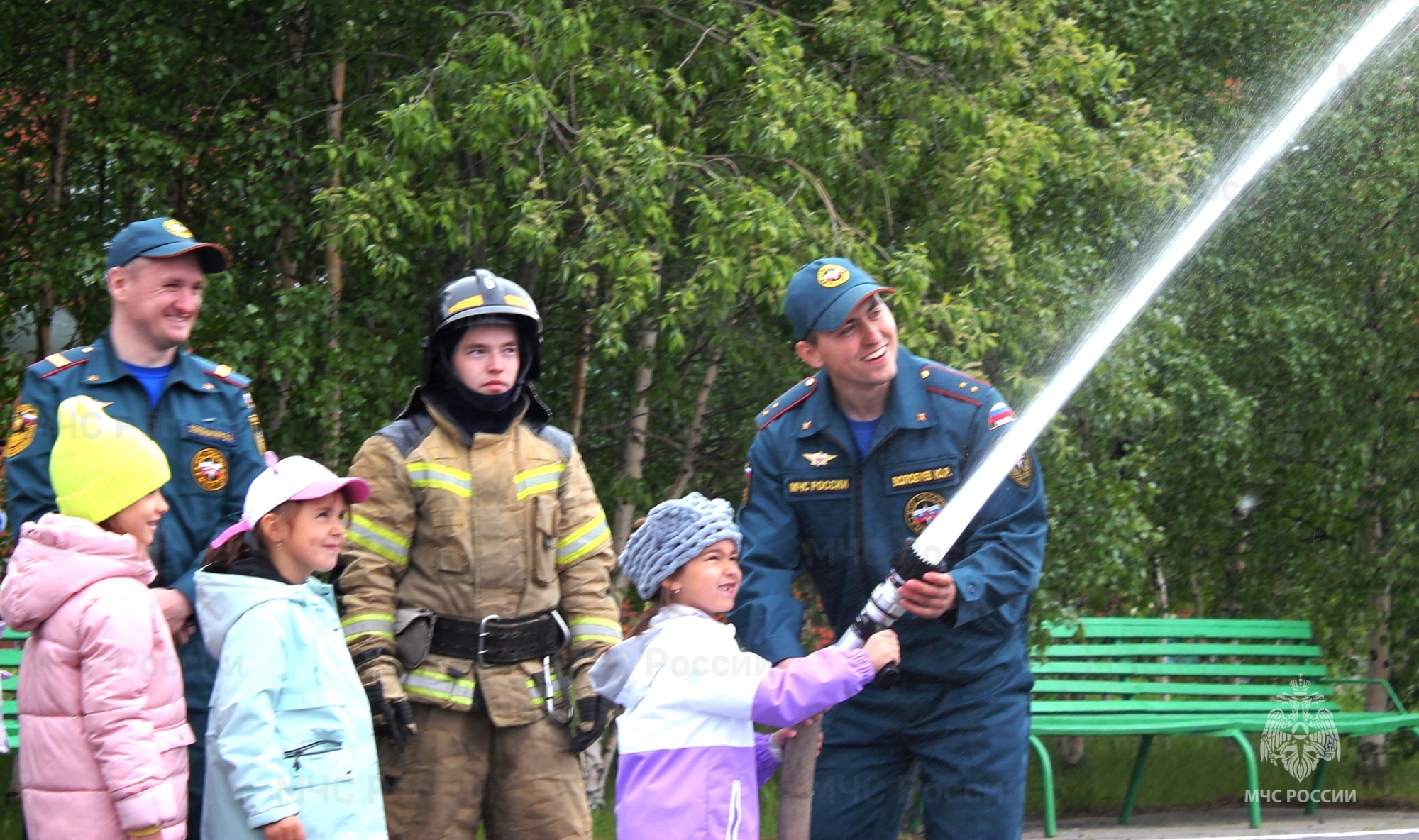 Несмотря на прохладную погоду, экскурсию начали на полосе психологической подготовки пожарных. Ребята вместе с бойцами «сдали» норматив «боевое развертывание от пожарной автоцистерны с подачей ствола первой помощи с использованием рукавной линии» с подачей воды. Это одно из любимейших упражнений детворы, так как можно «пострелять» водой из настоящего пожарного ствола!