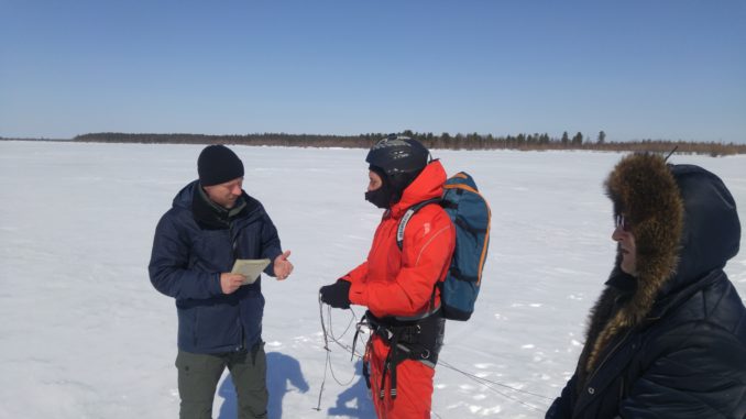 Первым пунктом посещения стало озеро Ханто. На момент приезда на берегу находилось более десятка легковых автомобилей местных жителей. Среди них не оказалось ни одного любителя подледного лова. В этот солнечный полдень на озерной поверхности несколько ребят занимались необычным и довольно экстремальным видом спорта — сноукайтингом. Для непосвященных кайт — это специальный воздушный купол, в зимнем варианте имеет форму крыла. Если спортсмену удается поймать ветер, то он на сноуборде или лыжах набирает на льду немалую скорость. Проверяющие прошагали от берега метров триста, чтобы встретиться с руководителем группы занимающихся ребят. Идти было сложно. Ноги по щиколотки проваливались в рыхлый лед и на месте следов сразу же выступала вода. Сергей Щербань объявил, что проводить занятия опасно для жизни. По его требованию спортсмены стали собирать снаряжение и возвращаться на стоянку.