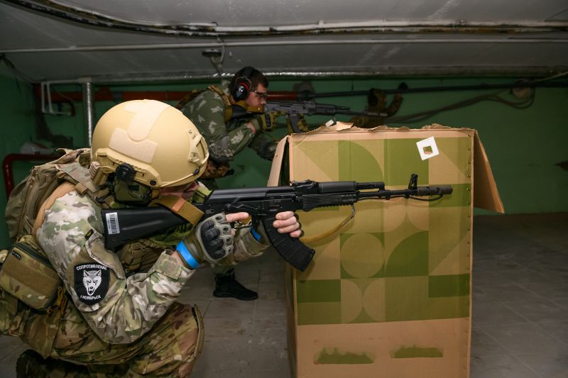 Стрельба, нахождение нужной точки на карте, зачистка зданий и захват позиций – и все это не армейские учения, а краткосрочные военные курсы. Совсем недавно корреспондентам «СВ» удалось стать зрителями настоящего боя. Точнее, почти настоящего, потому что во время выпускного экзамена слушателей курсов начальной военной подготовки «Полигон» использовались холостые патроны и шумовые гранаты. В огромном подвальном помещении здания, расположенного на территории регионального центра патриотического воспитания «Авангард», члены учебной группы отработали сценарий захвата и зачистки объекта от условного противника. Действия бойцов координировал преподаватель курсов, начальник отдела вневедомственной охраны Росгвардии по Ноябрьску Руслан Абдуллин. Находясь в непосредственной близости от места событий, наблюдатели чувствовали себя участниками этого в прямом смысле слова оглушительного действа: грохот стоял такой, что барабанные перепонки спасали только специальные наушники.