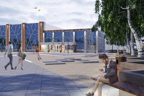Здесь предусмотрено расширение площади перед Домом культуры за счет функционального зонирования территории. В планировочном решении использован национальный орнамент. Планируется озеленить территорию, разместить зоны отдыха и малые архитектурные формы, установить так называемые сухие фонтаны с трех сторон площади.