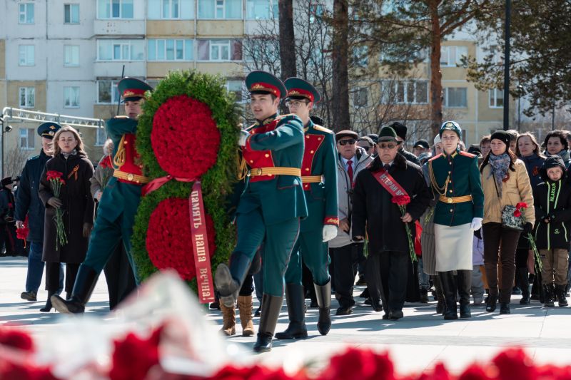 9 мая на площади Памяти очередь желающих отдать дань уважения защитникам Родины не иссякала в течение всего дня. В числе первых красные гвоздики к Вечному огню возложили ветераны, мэр Алексей Романов, председатель Городской Думы Ноябрьска Ирина Ращупкина и участники боевых действий. В колонне находились жители, гости города, работники предприятий и организаций. Например, заместитель начальника восстановительного поезда Виктор Зайцев вместе с сыном-пятиклассником Виталием принес мемориальный венок от коллектива Сургутской дистанции ОАО «РЖД».