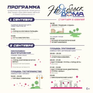 Наш город стал домом для десятков тысяч людей. Местом, где человек родился, вырос, обрел друзей, освоил профессию, создал семью, добился успехов. Поэтому на всех площадках горожане будут вспоминать историю Ноябрьска, яркие моменты его развития, многолетние добрые традиции, исполнять песни, читать авторские стихотворения о любимом городе, делать снимки на память в тематических фотозонах.