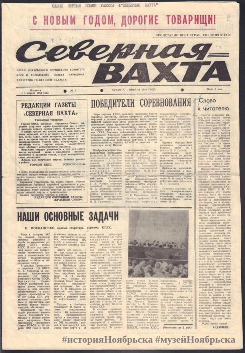 – С юбилеем, родная для всех ноябрян газета! Поначалу тираж «Северной вахты» был небольшой, и мы старались отправить очередной номер рабочим на участки, нашим дорожникам. Газету передавали из рук в руки, зачитывали до дыр. Спасибо всем причастным. Газете желаем долгой жизни.