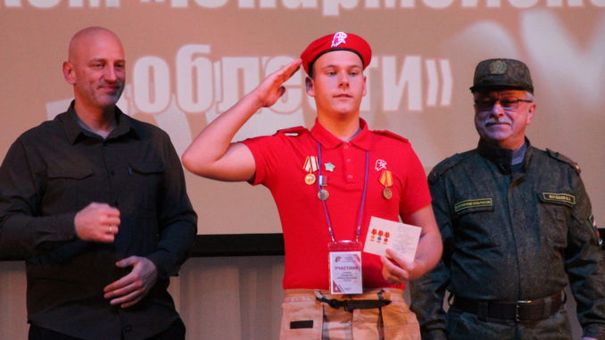После приветственных речей более чем десяти юношам и девушкам вручили нагрудные знаки «Юнармейская доблесть» III степени. Как отмечается в наградных листах: «за личные заслуги и активное участие в мероприятиях, высокие результаты в муниципальных, региональных и всероссийских конкурсах». Награждение провел федеральный эксперт по военно-спортивной подготовке и патриотическому воспитанию движения «Юнармия» Сергей Некрутов (Москва).