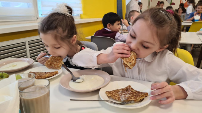 В понедельник во всех школьных столовых Ноябрьска состоялся блинный дебют – на завтрак ученикам подали аппетитные ажурные блинчики со сгущёнкой.