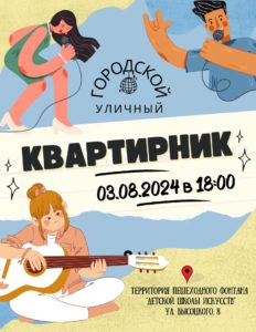 Эта суббота будет наполнена душевными песнями, теплом и хорошим настроением. Горожан ждут 3 августа в 18.00 в сквере Искусств (территория ДШИ им. П.И. Чайковского, пешеходный фонтан).