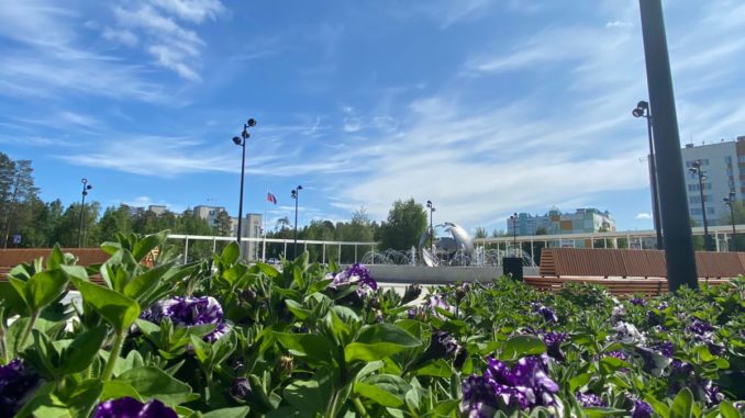 В городе полным ходом идет высадка цветов — лобелии, сальвии, аллисум, амарант и целозия.