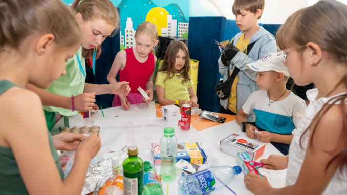 В качестве строительного материала использовались пластиковые бутылки, коробки из-под продуктов, жестяные банки. Разделившись на три команды и вооружившись скотчем, ножницами и карандашами, дети в течение часа создавали свои модели городов.