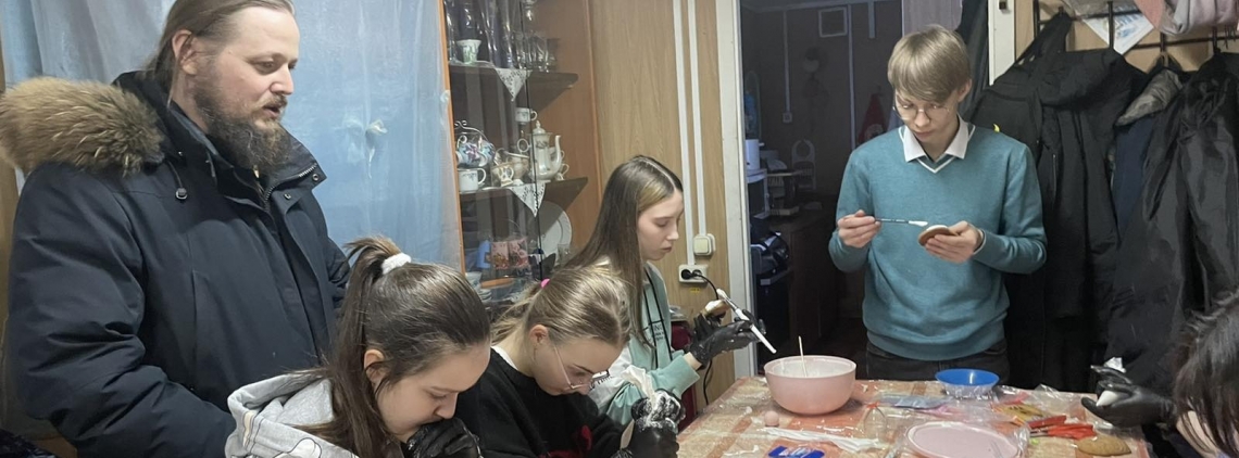 Под руководством преподавателей Воскресной школы храма Вмч. Георгия Победоносца, ребята из молодежного объединения " Благо", ученики 7А класса МАОУ СОШ 1 г. Лабытнанги и воспитанники Воскресной школы храма изготовили и украсили пасхальные пряники.