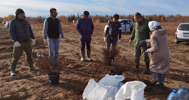 На Епархиальном поле будет самый большой за Полярным кругом ягодник. Сотрудники Епархиального управления под руководством агронома епархии матушки Елены высадили 600 кустов ягодных кустов: несколько видов жимолости, красной,
