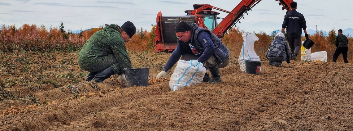 В первый день картофель выкапывали с помощью сельскохозяйственной техники. Теперь предстоит ручной труд, работа будет вестись до заморозков.