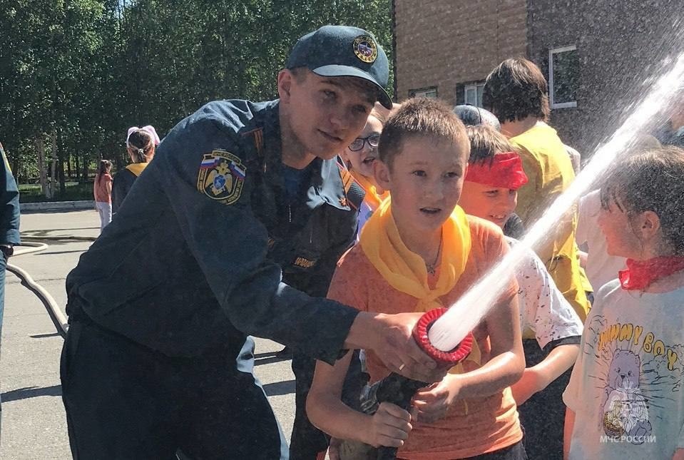 Встречи с пожарными в рамках профильных смен здесь давно стали традицией. Вот и в этот раз мальчишки и девчонки с интересом слушали рассказ о работе пожарных, наперебой отвечали на вопросы о пожарной безопасности, с нескрываемым любопытством изучали пожарный автомобиль изнутри и снаружи, примеряли боевую одежду и средства защиты органов дыхания.