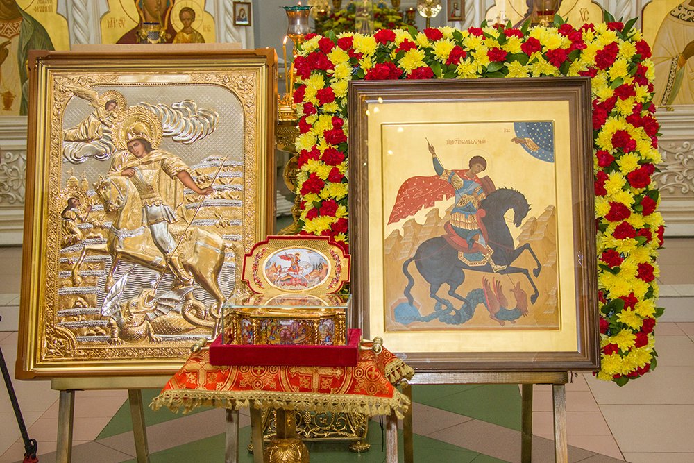 Ковчег с мощами великомученика и защитника воинства российского Георгия Победоносца по маршруту большого крестного хода доставили в окружную столицу из Норильска.