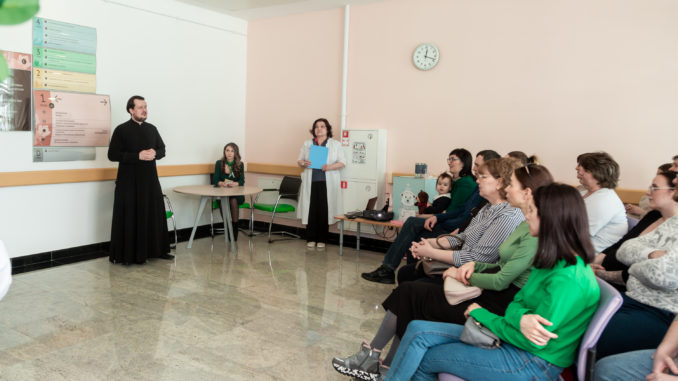 В Перинатальный центр пригласили будущих мам вместе с близкими родственниками, представителей страховой компании и духовенства. Им рассказали про полисы цифрового формата и изменения, касающиеся получения медицинского полиса для новорожденного.