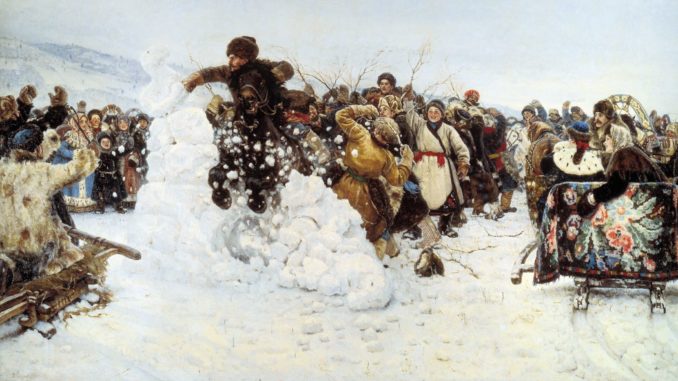 Сегодня мы играем в снежки. Безобидная забава. Но обязательно кто-то да выходит из игры с синяком под глазом. А раньше наши предки брали приступом снежный городок. И эта игра была еще менее гуманна. Мало того что оборонять и брать «крепость» часто шли с настоящими дубинами, так еще и конницу задействовали.