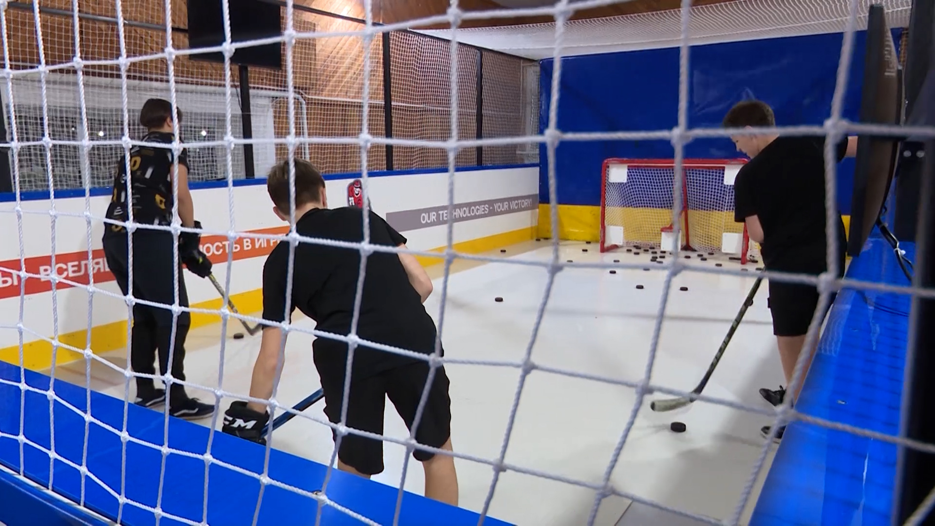В Уренгое хоккеисты отрабатывают броски на специальном тренажёре