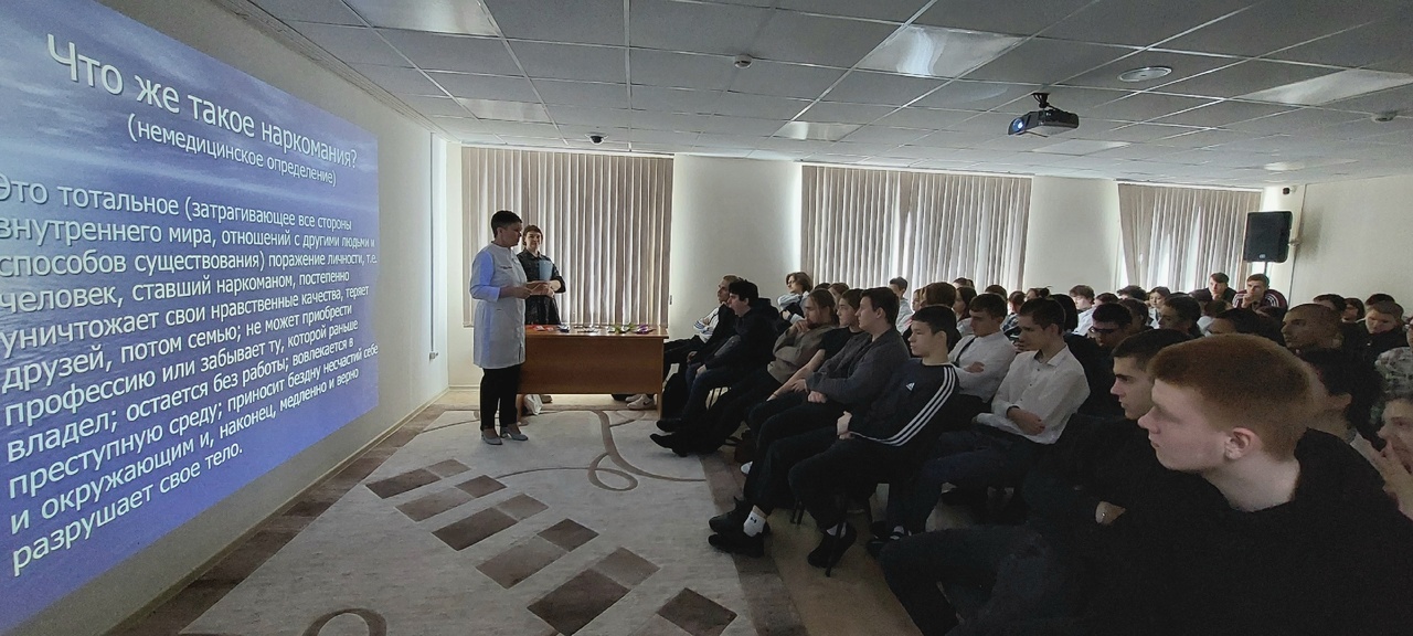 Наши специалисты продолжают просветительскую работу с молодёжью. Так, в рамках недели отказа от вредных привычек врач-психиатр Татьяна Шипулина пришла в гости к студентам Надымского профессионального колледжа,