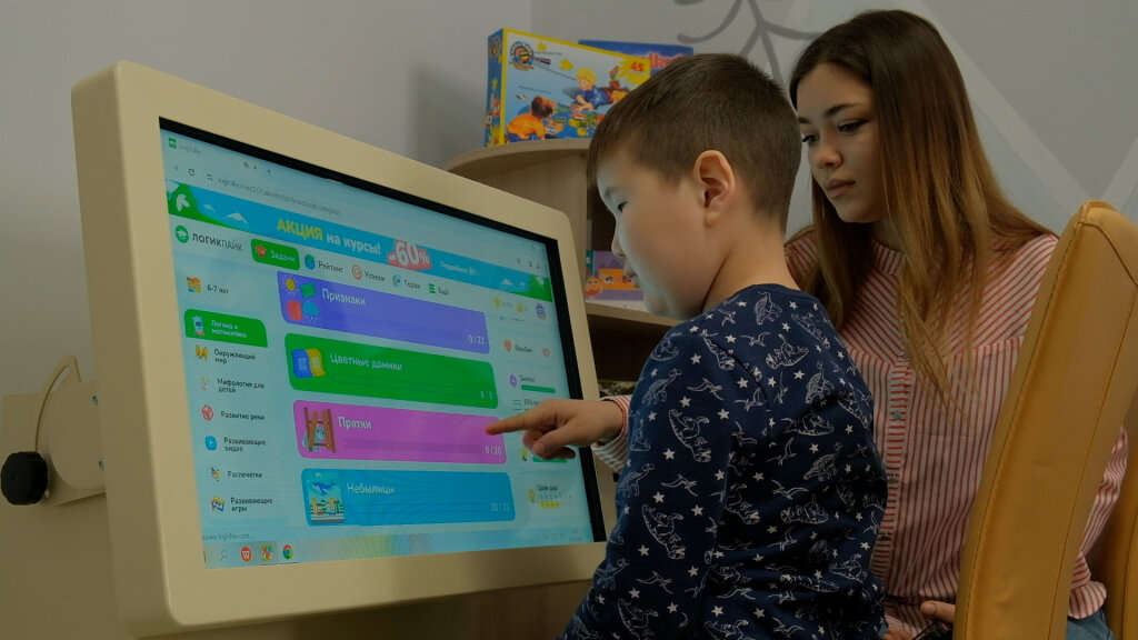 Еще одно приобретение – детский интерактивный игровой стол. Для детей младшего возраста занятия проходят в игровой форме, где они активно взаимодействуют с персонажами игр. Для подростков есть возможность пройти обучающий курс по финансовой, компьютерной грамотности и безопасности, а также познакомиться с различными профессиями и определиться в выборе специальности.