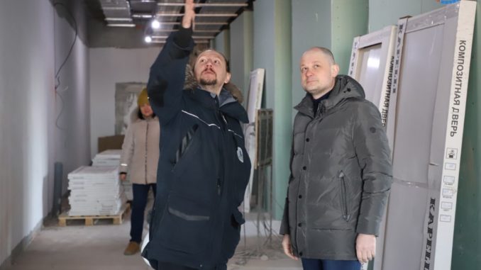 Фото ЦГБ Ноябрьска Главный врач ЦГБ Максим Зинин вместе с заместителями осмотрел ход строительства новой поликлиники.