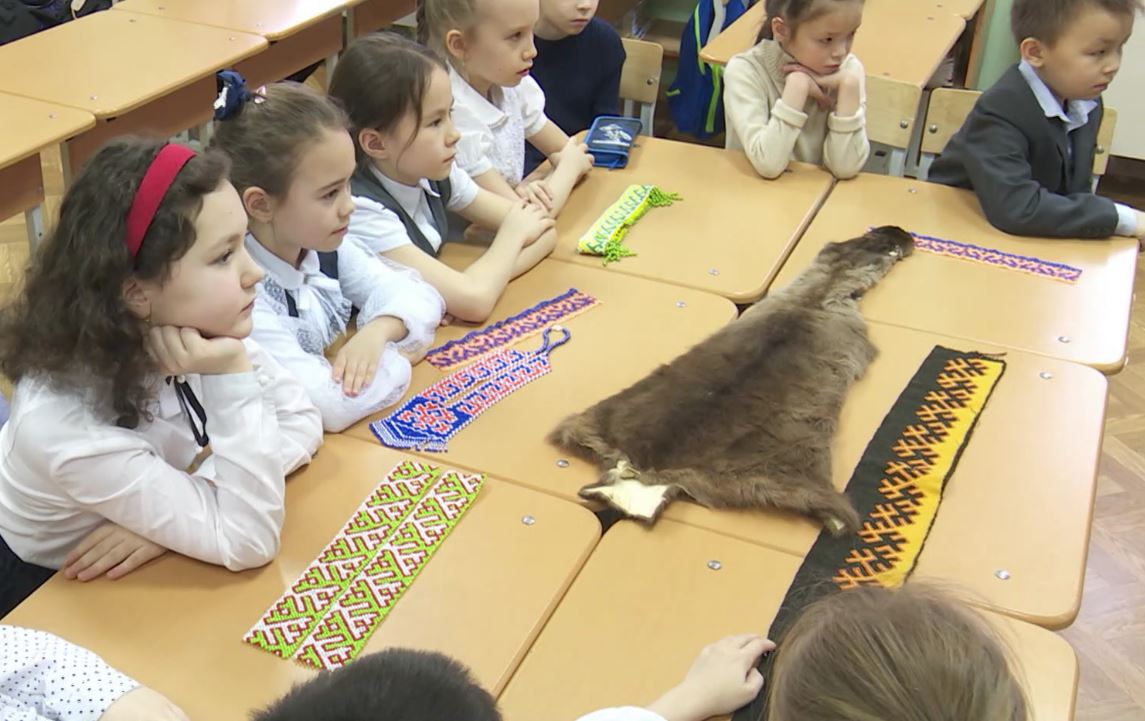 Второклашки знакомятся с материалами, из которых северные кочевники шьют национальную одежду - ягушку. Для маленького Никиты это вещь, знакомая с детства, ведь ее носят мама, бабушки, сестры. Женщины тундры испокон веков создают одежду и обувь для всей семьи и обязательно украшают орнаментом.
